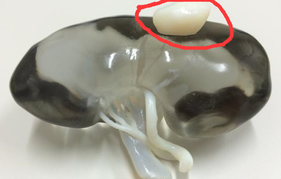 相信很多人和筆者一樣,還是感到疑惑,傳統拍片和3D打印出來的器官模型具體有哪些不同,后者又如何表示病變或者需要進行手術的位置呢?對于這一點,專業進行3D設計和打印的東莞創客聯盟公司給讀者解答了這個疑惑。其負責人陳小姐表示,通過不同顏色來表達病變或需要進行手術的位置,所打印出器官模型足以讓病變位置一目了然。為便于說明,其負責人展示他們做的一個案例: