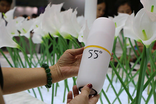 裝上熱水就馬上變到55度可以喝的神奇水杯。