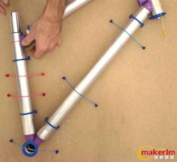 設(shè)置(Setup)——用廢牛仔褲制成布條,以供加固時(shí)使用;測(cè)量,并在管上標(biāo)記;