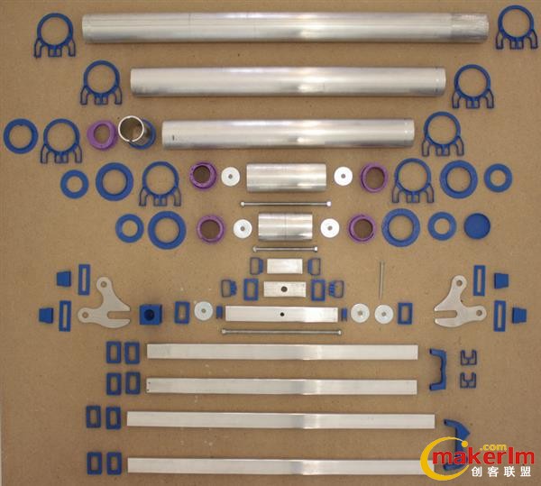 Jigless Kit包含PLA材質(zhì)的3D打印部件外,還含有一套完整的預(yù)切光鋁管。打印所有套件后,安裝將非常簡(jiǎn)單,只需要用到一個(gè)螺絲釘。