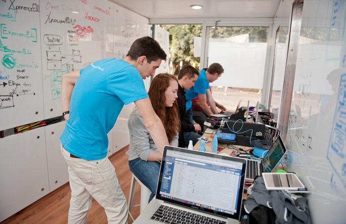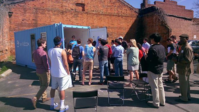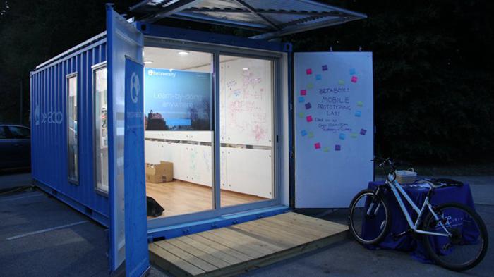 這個(gè)叫Betaversity創(chuàng)業(yè)團(tuán)隊(duì)用一個(gè)集裝箱作為實(shí)驗(yàn)室,里面有3D打印機(jī)及一些別的設(shè)備,他們把這個(gè)獨(dú)特的實(shí)驗(yàn)室命名為“BetaBoxes”,并用卡車?yán)鼮榭蛻籼峁┓?wù)。