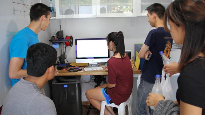 外觀上,BetaBoxes只是個(gè)普普通通的藍(lán)色集裝箱,里面卻別有洞天。一個(gè)標(biāo)準(zhǔn)的BetaBoxes包含一臺(tái)一臺(tái)PrintrBot 3D打印機(jī)、一臺(tái)3D Systems掃描儀、Leap Motion體感控制系統(tǒng)、白板、樹莓派(Rasperry Pi)、3D打印筆Doodler、Arduino、Solidworks 3D建模軟件、Adobe Creative Suite軟件、一套焊接工具、各種電動(dòng)工具,一個(gè)Chromecast電視棒和Wacom數(shù)位板……可謂應(yīng)有盡有。